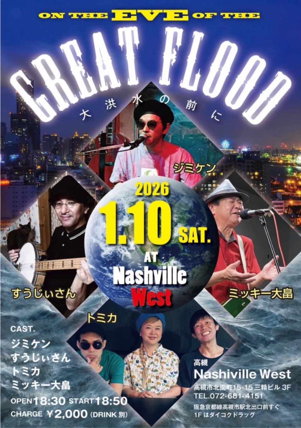 | 2026年1月10日(土) ジミケン presents『ON THE EVE OF THE GREAT FLOOD』〈ジミケン/すうじぃ/ミッキー大畠/トミカ〉 | ||