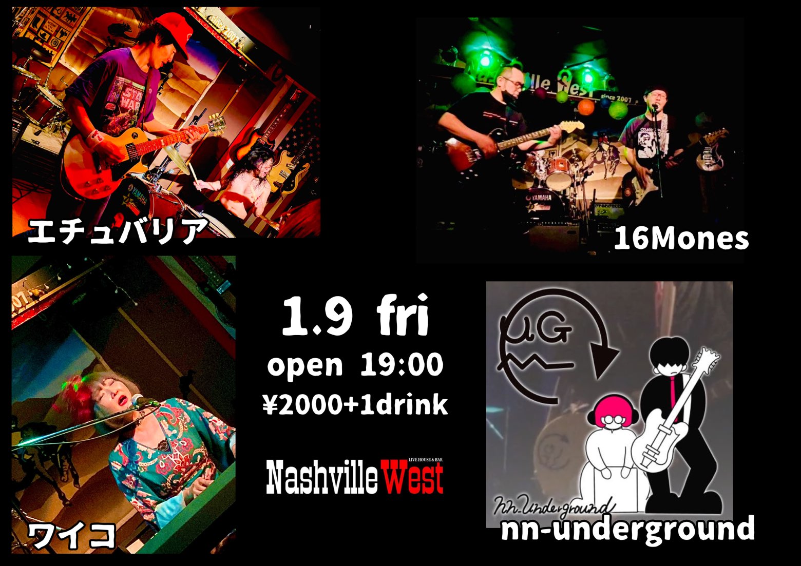 | 2026年1月9日(金) 16Mones/エチュバリア/nn-underground/ワイコ | ||
