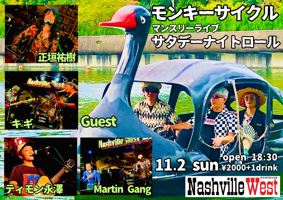 | 2025年11月2日(日) モンキーサイクル マンスリーライブ ”サタデーナイトロール”Vol.83〈ロックンロール〉(今月はイレギュラー)【Guest:Martin Gang/正垣祐樹/ティモン永澤/森川尚史】 | ||