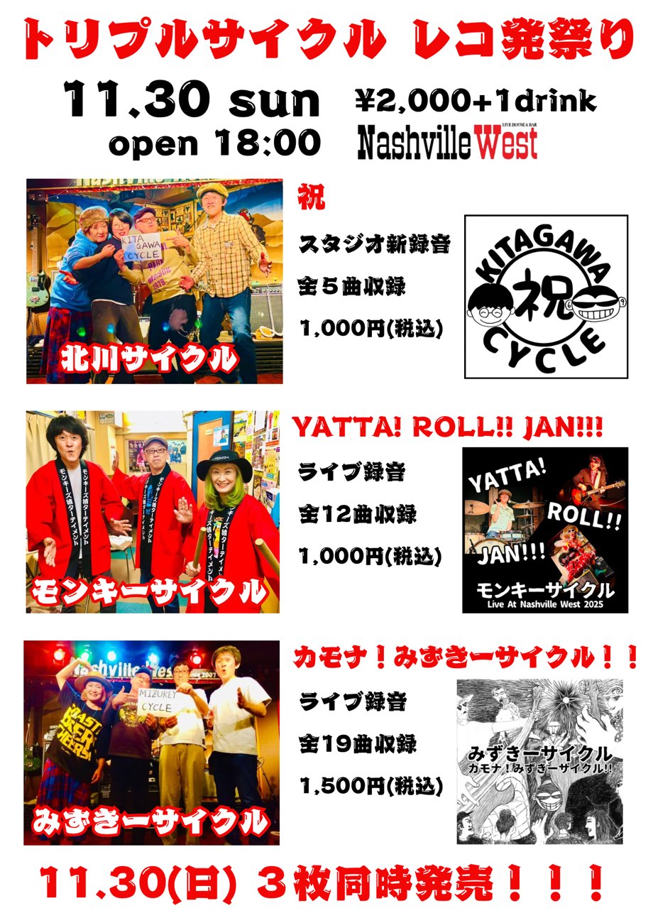 | 2025年11月30日(日) トリプルサイクル レコ発祭り〈北川サイクル/みずきーサイクル/モンキーサイクル〉 | ||