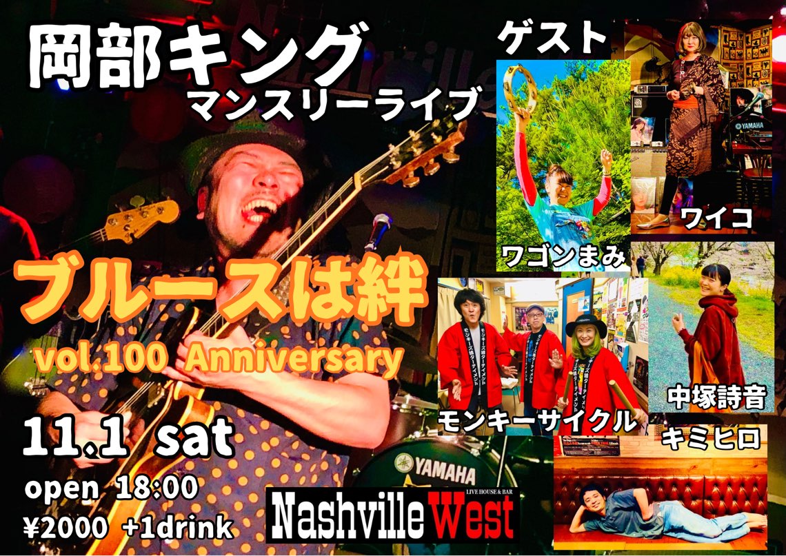 | 2025年11月1日(土) 岡部キング マンスリーライブ『ブルースは絆 Vol.100』(毎月第1土曜日)【Guest:モンキーサイクル/ワイコ/キミヒロ/ワゴンまみ/中塚詩音】 | ||