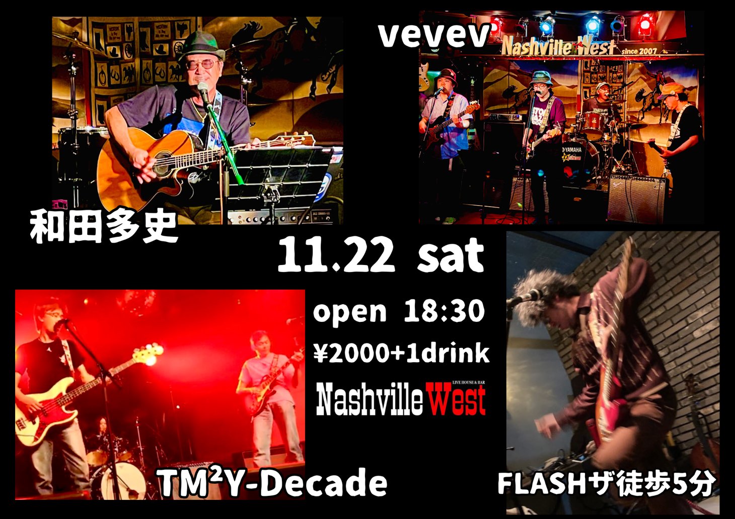 | 2025年11月22日(土) vevev/和田多史/TM2Y-Decade/FLASHザ徒歩5分 | ||