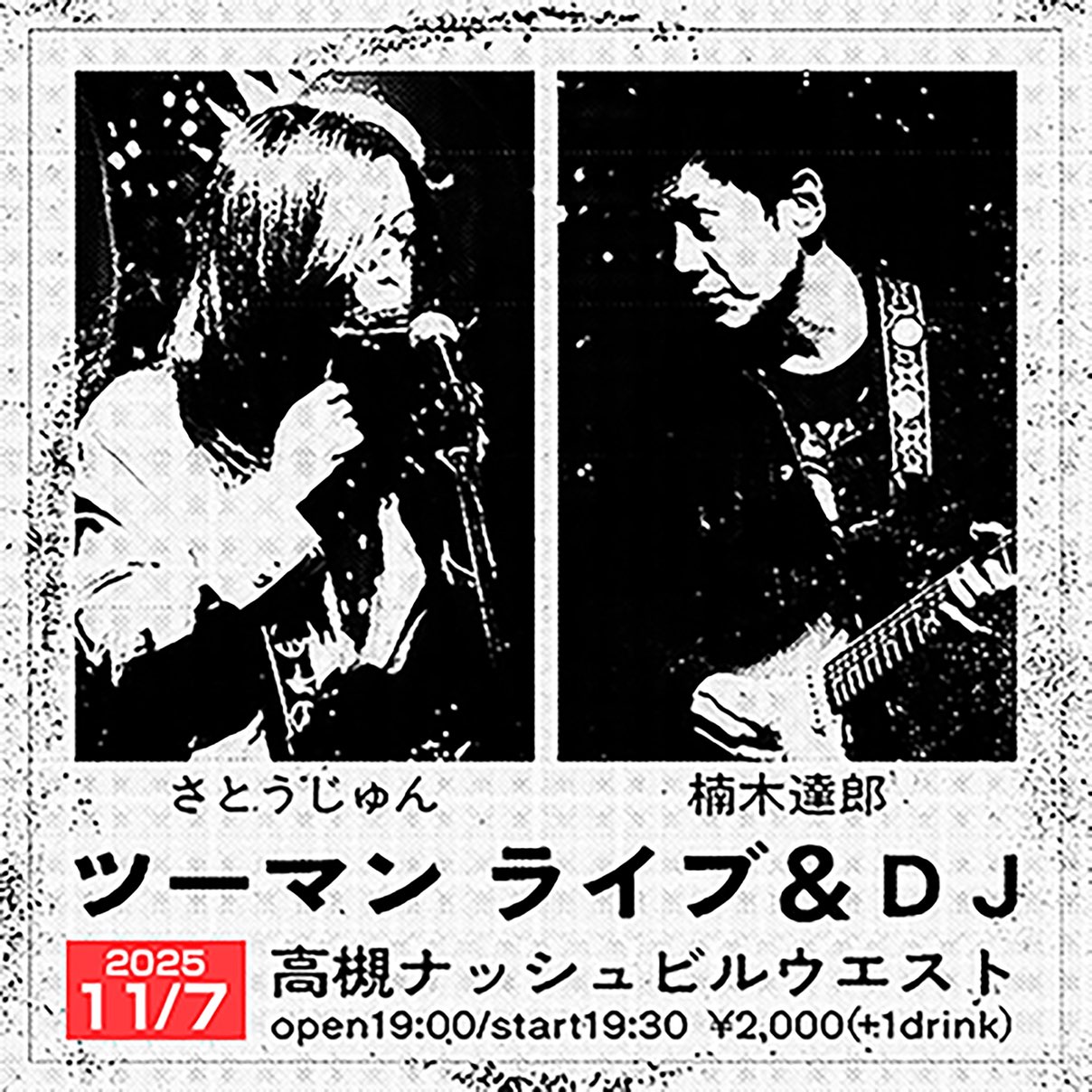 | 2025年11月7日(金) さとうじゅん + 楠木達郎 ツーマン ライブ&DJ | ||