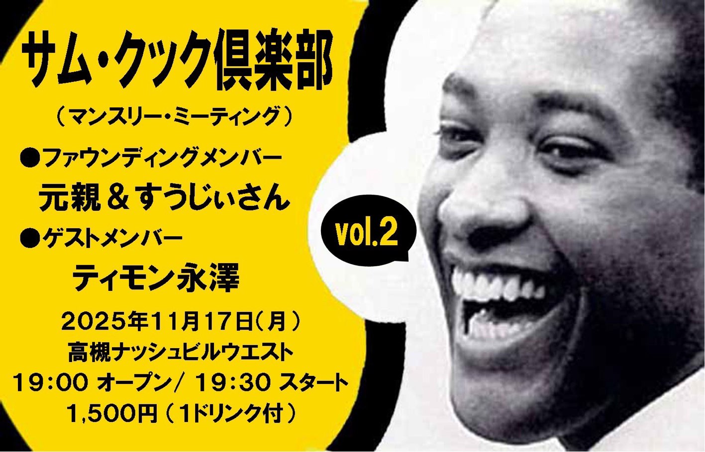 | 2025年11月17日(月) 〈トーク〉『サム・クック倶楽部 vol.2』〈元親&すうじぃさん/ティモン永澤〉 | ||