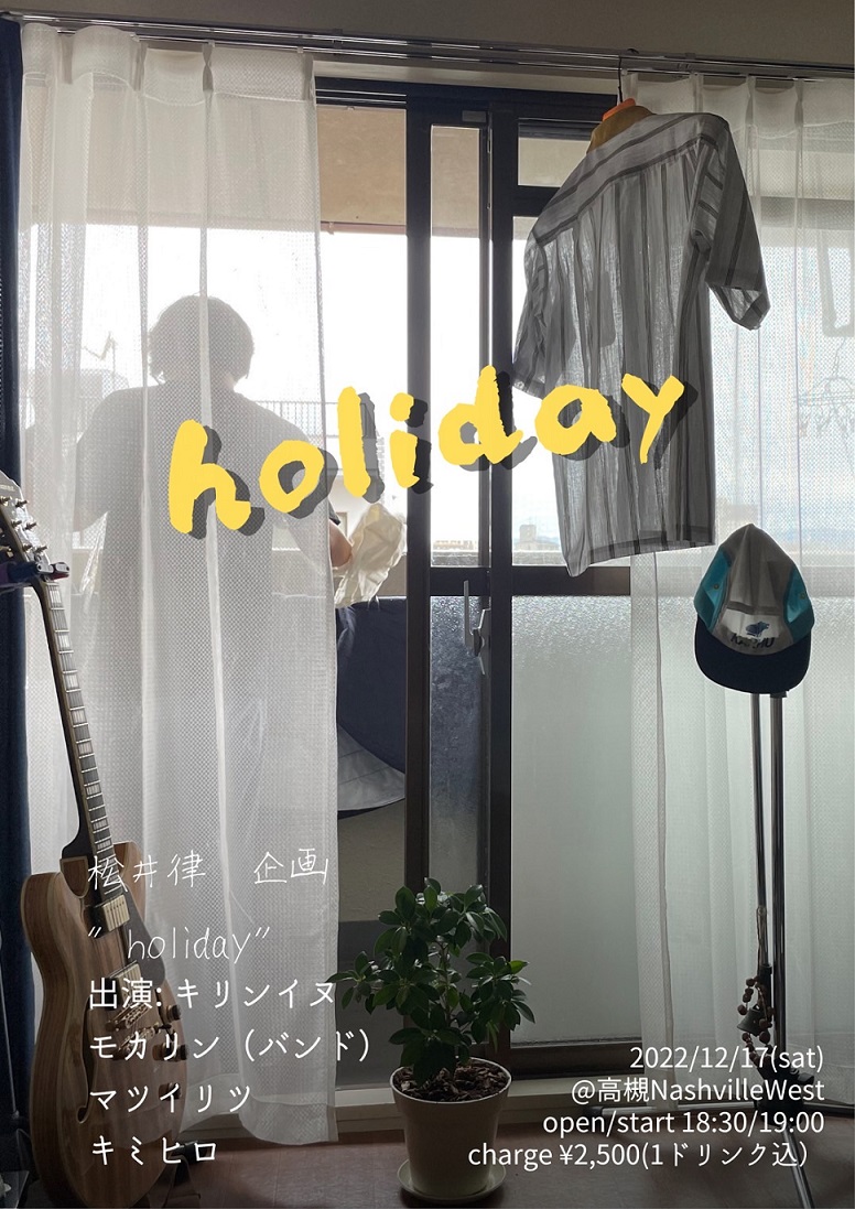 | 2022年12月17日(土) 松井律 presents 『holiday』〈マツイリツ/キリンイヌ/キミヒロ/モカリン(バンド) 〉 | ||