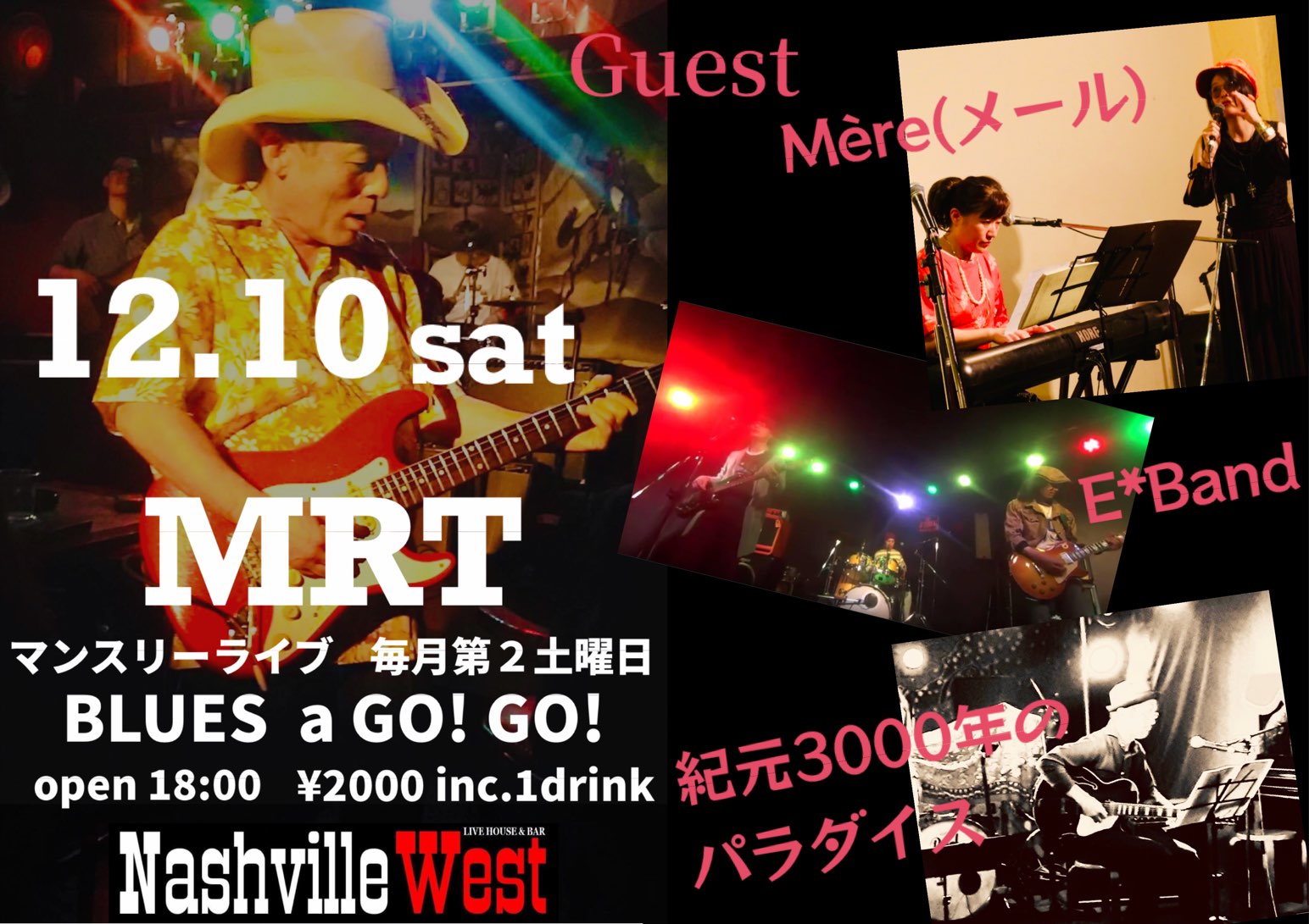 | 2022年12月10日(土) MRTマンスリーライブ ”BLUES A GO GO!” Vol.105〈BLUES〉(毎月第2土曜日)【Guest:E*Band/Mere/紀元3000年のパラダイス】 | ||