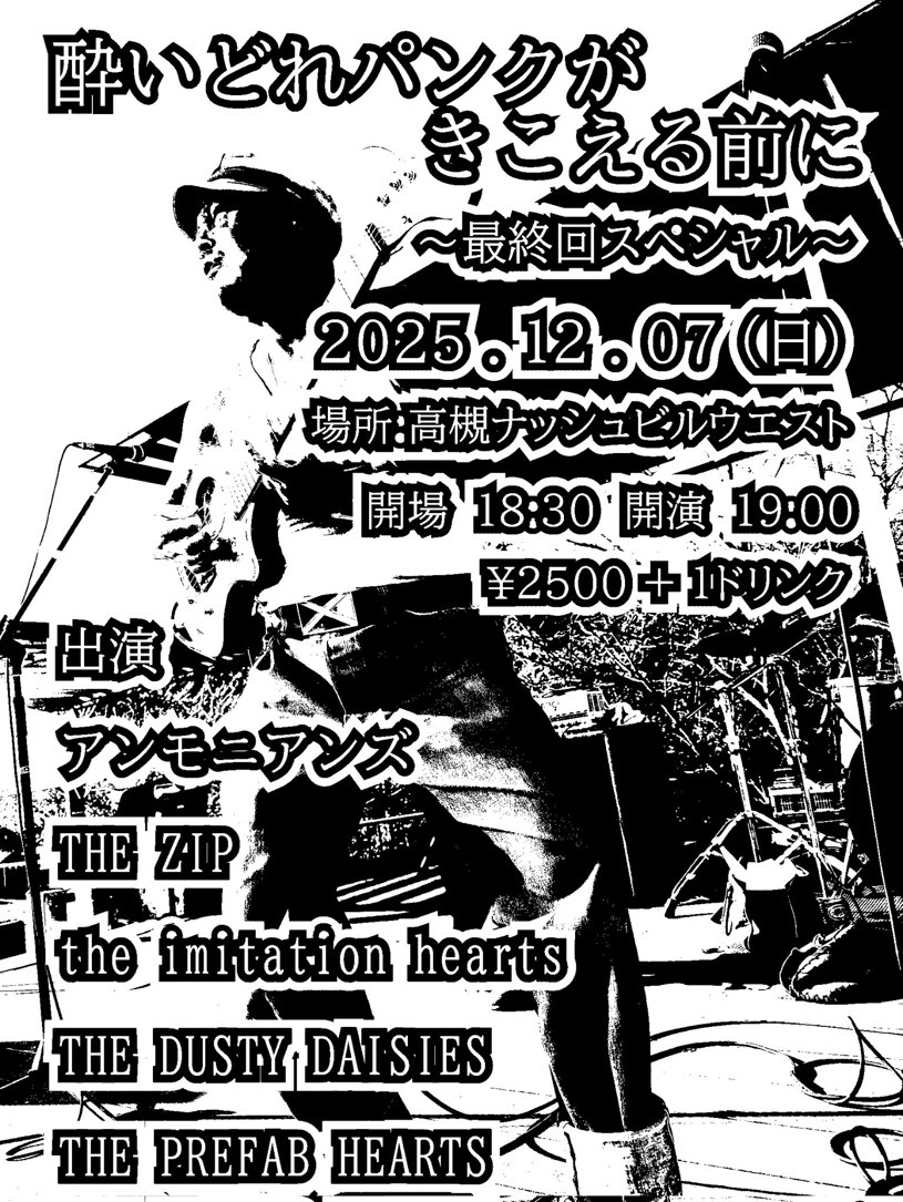 | 2025年12月7日(日) ギタールンペン presents 『酔いどれパンクがきこえる前に 〜最終回スペシャル〜』【アンモニアンズ/THE ZIP/the imitation hearts/THE DUSTY DAISIES/THE PREFAB HEARTS】 | ||