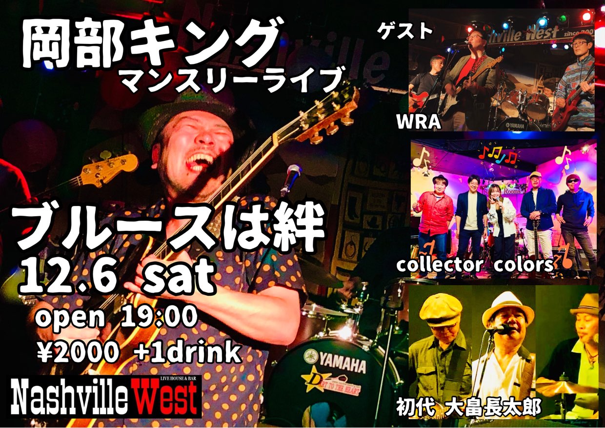 | 2025年12月6日(土) 【NightTime】岡部キング マンスリーライブ『ブルースは絆 Vol.101』(毎月第1土曜日)【Guest:collector colors/初代 大畠長太郎/WRA】 | ||