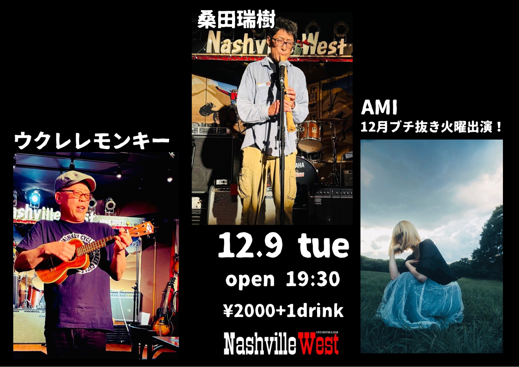 | 2025年12月9日(火) AMI/桑田瑞樹/ウクレレモンキー | ||