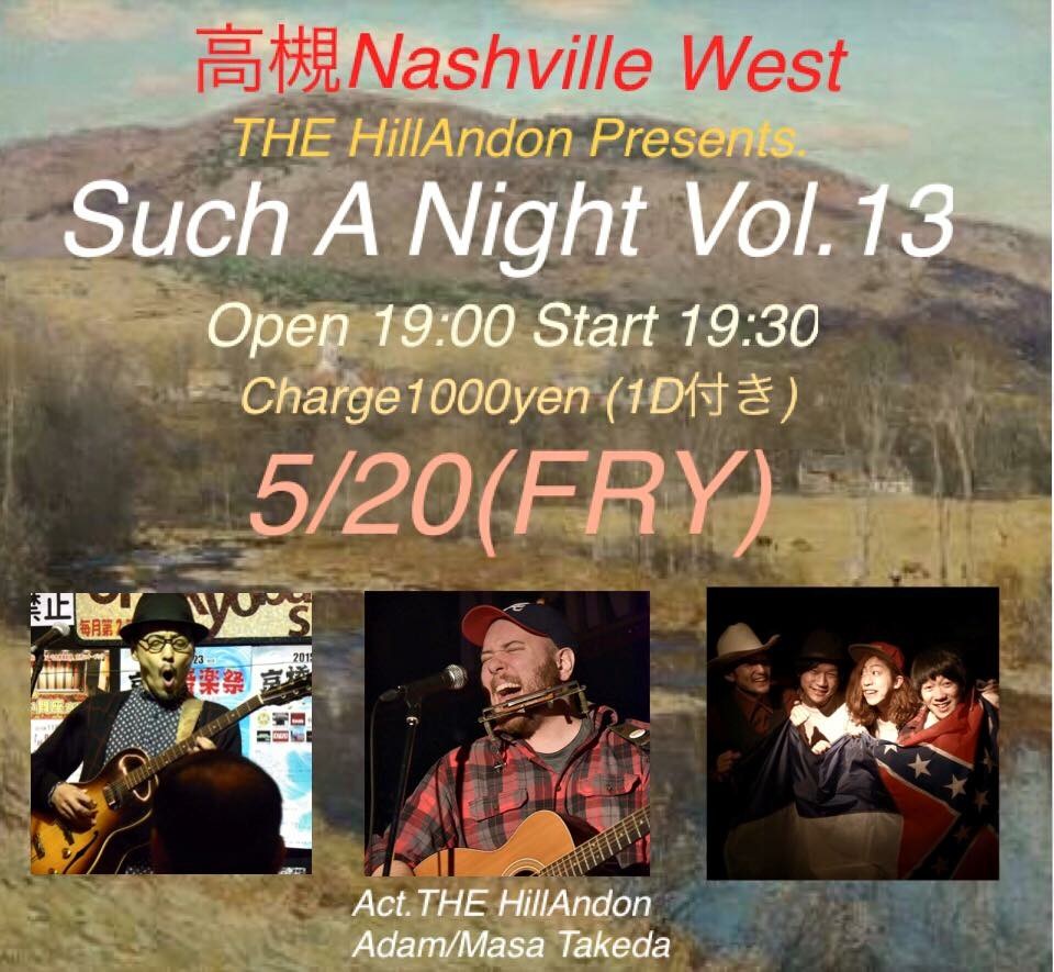| 2016年5月20日(金) THE HillAndon presents ”Such A Night ”Vol.13(毎月第3金曜日) | ||
