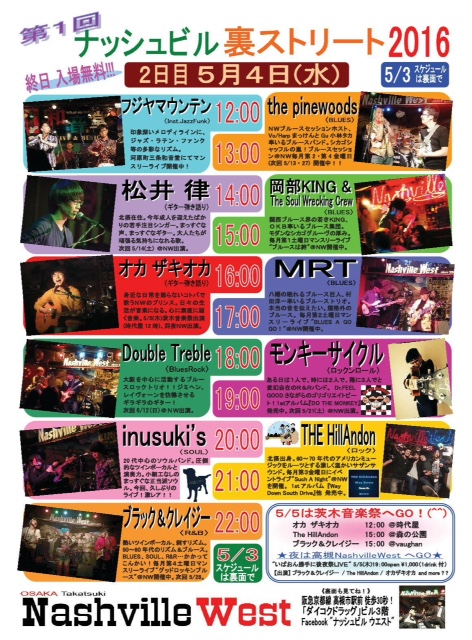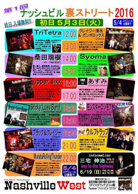 | 2016年5月3日(火) 第1回 ナッシュビル 裏ストリート 2016 [初日] | ||