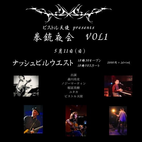 | 2025年5月11日(日) ピストル天使 presents 『拳銃夜会 vol.1』【森川尚史/ノジーマーティン/稲冨英樹/ユタカ(BLUEDIE)/ピストル天使】 | ||