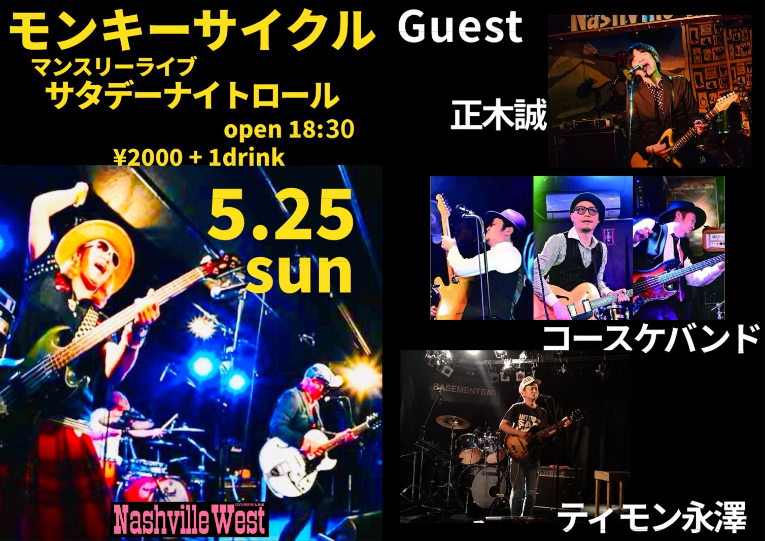 | 2025年5月25日(日) モンキーサイクル マンスリーライブ ”サタデーナイトロール”Vol.77〈ロックンロール〉(今月はイレギュラー)【Guest:正木誠/コースケバンド/ティモン永澤】 | ||