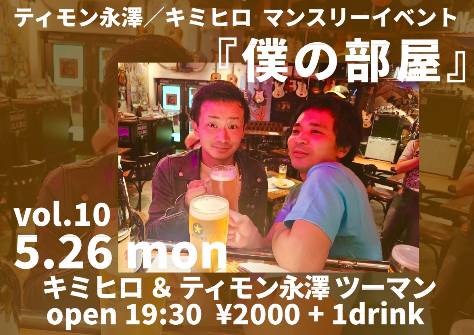 | 2025年5月26日(月) 『僕の部屋 vol.10』〈【ホスト】キミヒロ&ティモン永澤〉(今月はイレギュラー) | ||