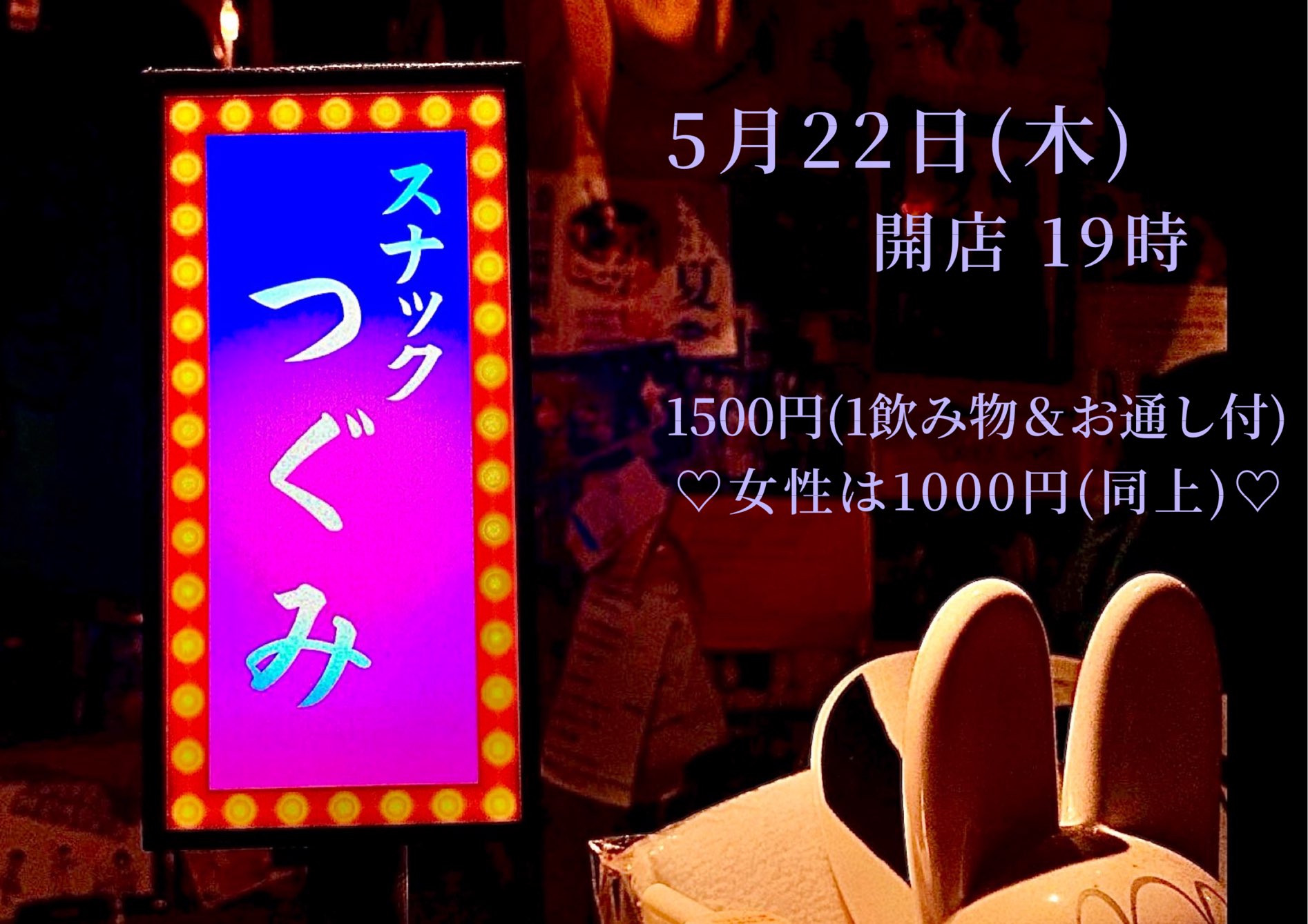 | 2025年5月22日(木) 〈スナック営業〉スナック つぐみ | ||