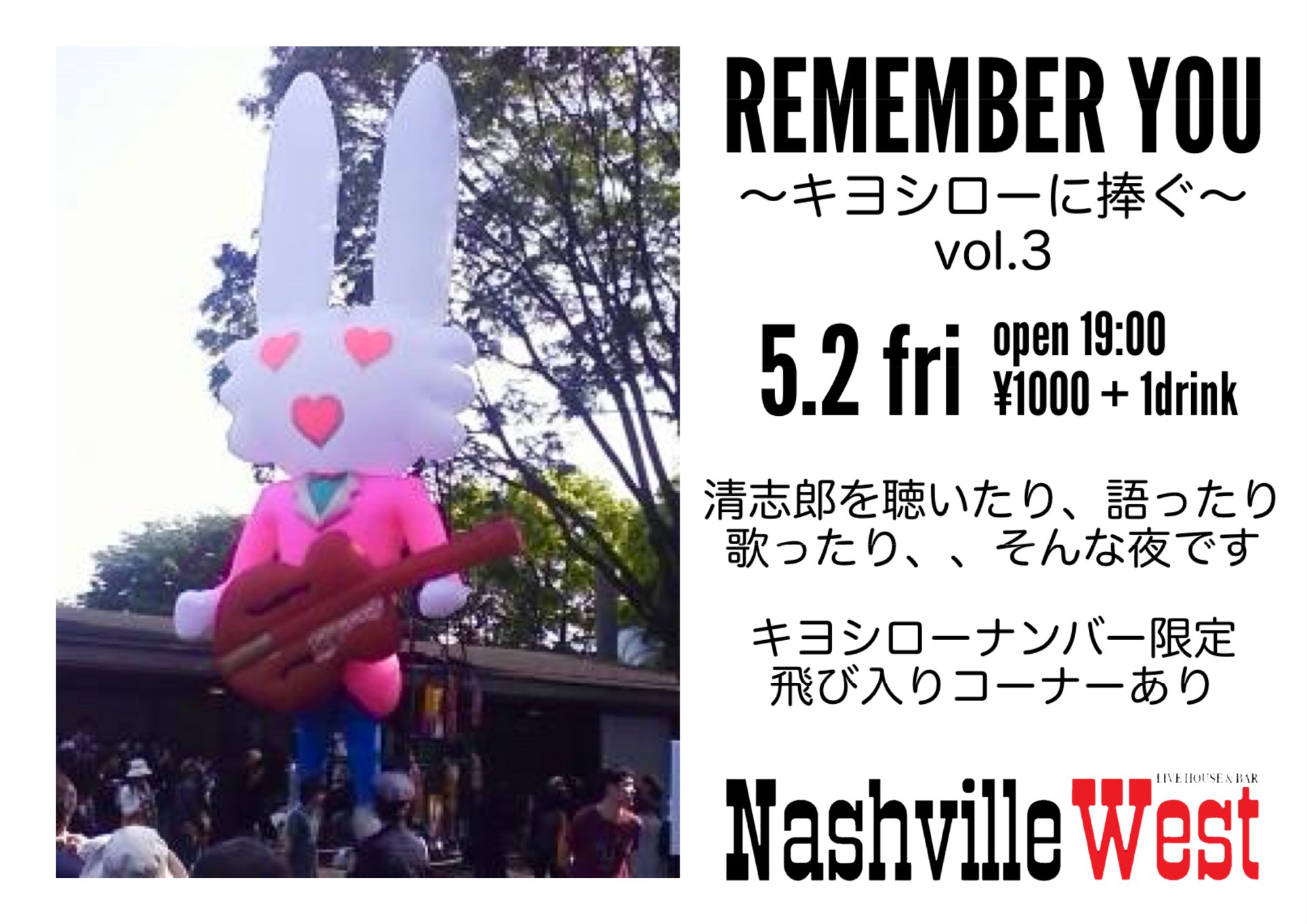 | 2025年5月2日(金) 『REMEMBER YOU 〜キヨシローに捧ぐ〜 Vol.3』 | ||