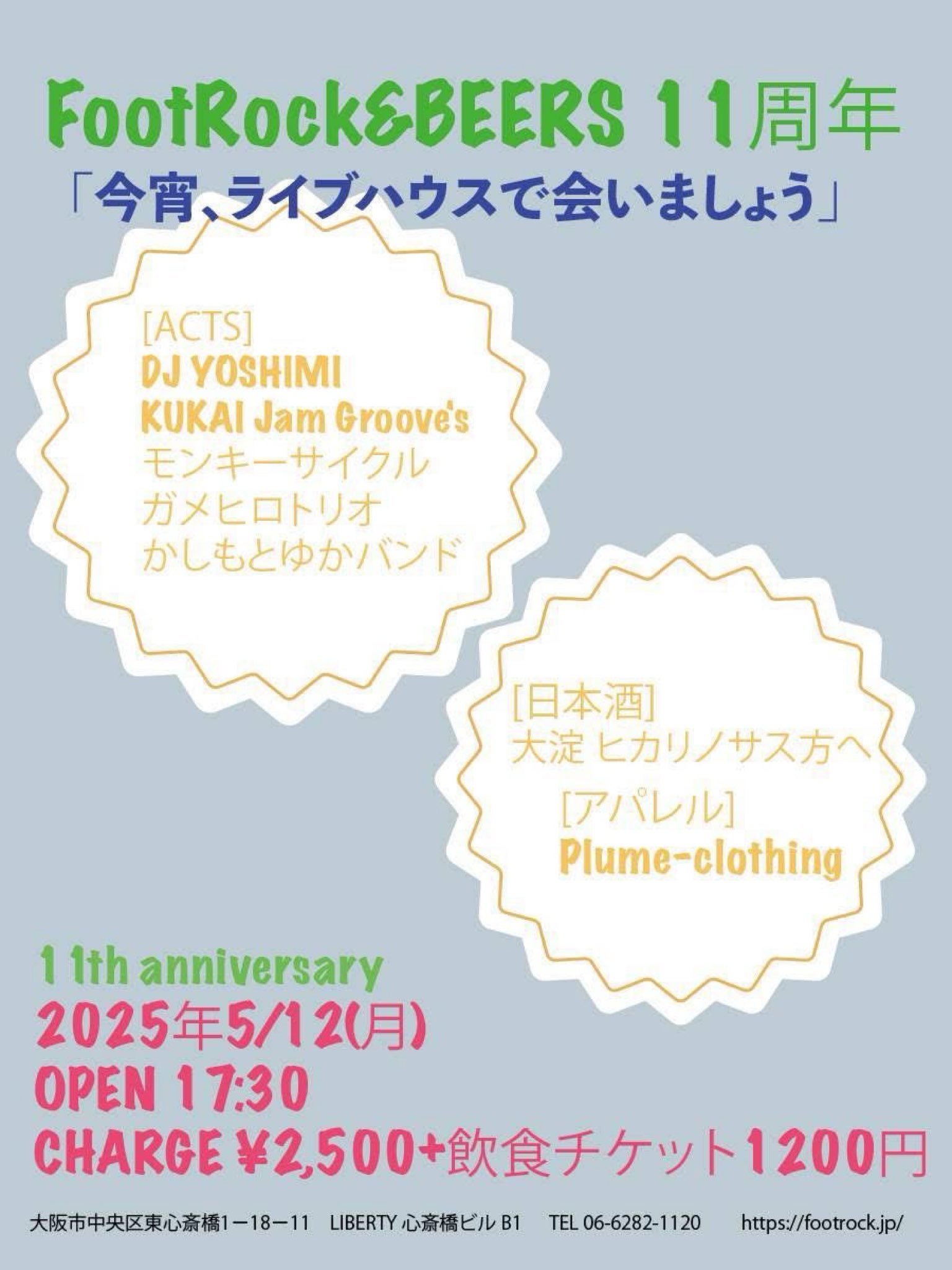 | 2025年5月12日(月) お休みです、が・・・ ⇒ 心斎橋・FootRock&BEERS〈モンキーサイクル〉 | ||