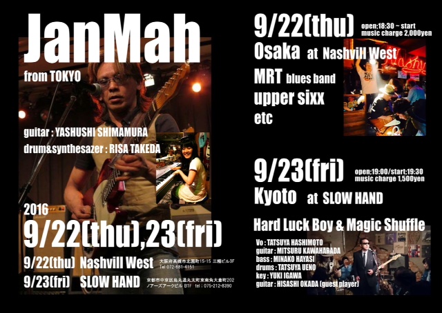 | 2016年9月22日(木) Jan Mah【from 東京】/MRT/upper sixx /ブラック&クレイジー | ||