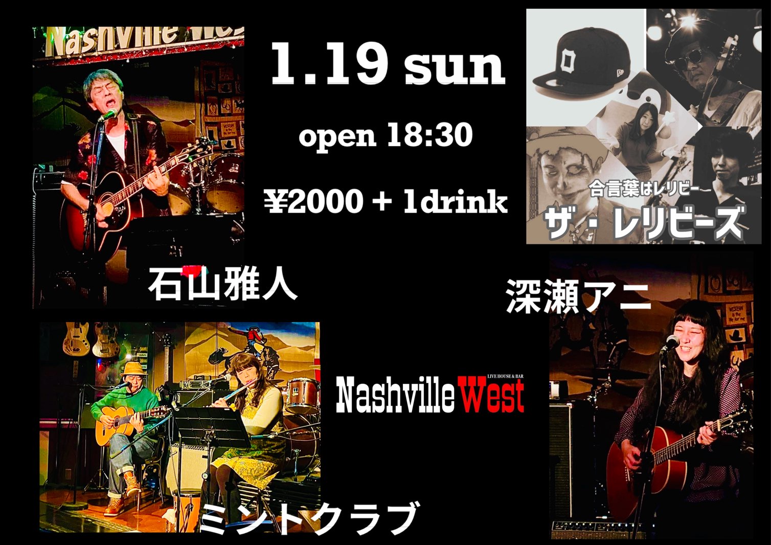 | 2025年1月19日(日) ザ・レリビーズ/深瀬アニ/ミントクラブ/石山雅人 | ||