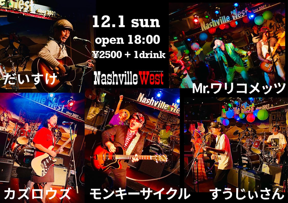 | 2024年12月1日(日) Mr.ワリコメッツ/カズロウズ/すうじぃさん/だいすけ | ||