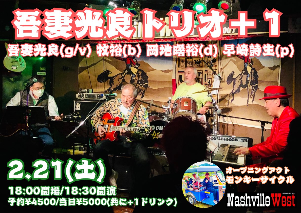 @ メールにて『氏名(フリガナ)/人数/電話番号』を明記して以下アドレスに送信して下さい。メールタイトルは「2/21 吾妻光良トリオ+1」としてください。 アドレス nashvillewest2007@gmail.com