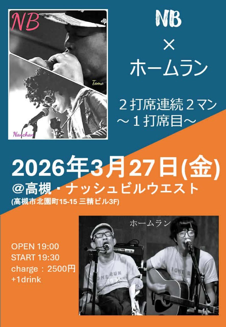 | 2026年3月27日(金) ホームラン×NB 2マンライブ『2打席連続2マン〜1打席目〜』 | ||